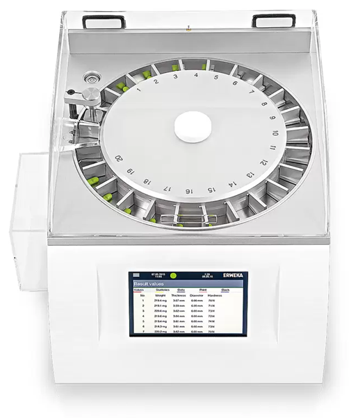 The compact system's creative design elements and unwavering attention to detail make it 100% compliant with all common pharmacopeias: The Oblong Slider® automatically aligns uniformly shaped oblongs, its integrated load cell weighs samples automatically, and its user-friendly touch screen allows storing up to 100 products and methods.