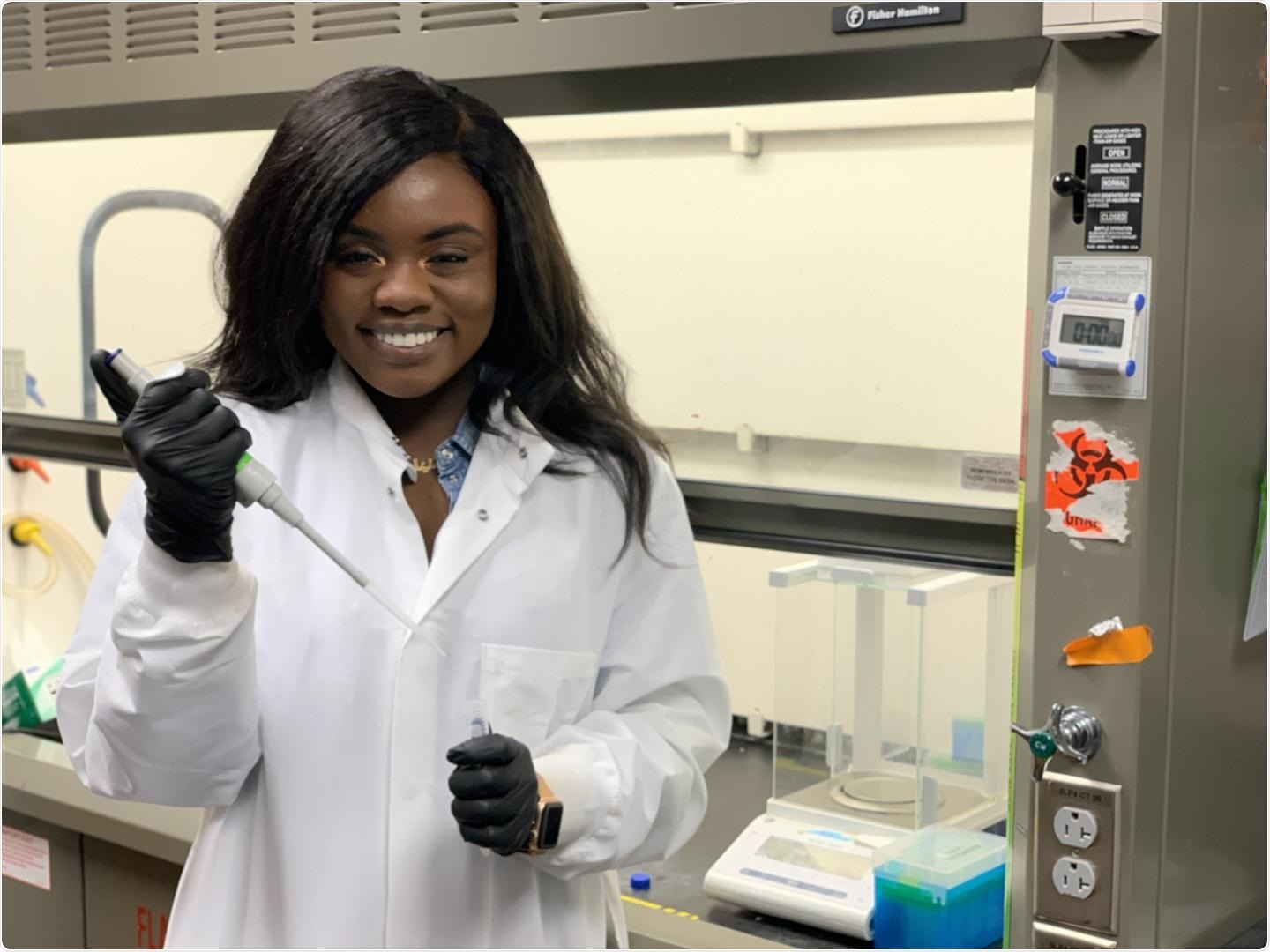 Aaliyah Shodeinde, a fourth-year graduate researcher in the McKetta Department of Chemical Engineering working in professor and drug delivery pioneer Nicholas Peppas’ lab. Image Credit: The University of Texas at Austin.