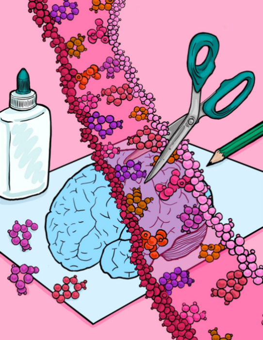 A-to-I editing functions much like a large-scale cut and paste type of edit on pre-mRNA sequences, driven by ADAR enzymes. In the brain, these natural modifications have diverse effects on gene expression and protein function throughout neurodevelopment. Image Credit: Jessica Johnson