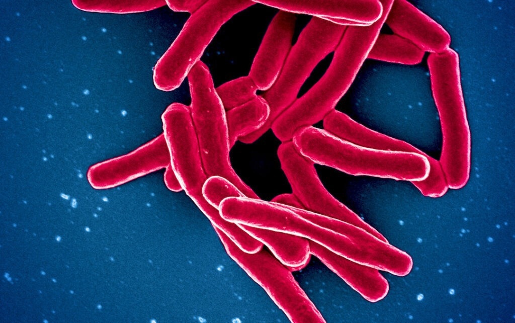Scanning electron micrograph of Mycobacterium tuberculosis particles (colorized red), the bacterium which causes TB. Image Credit: NIAID